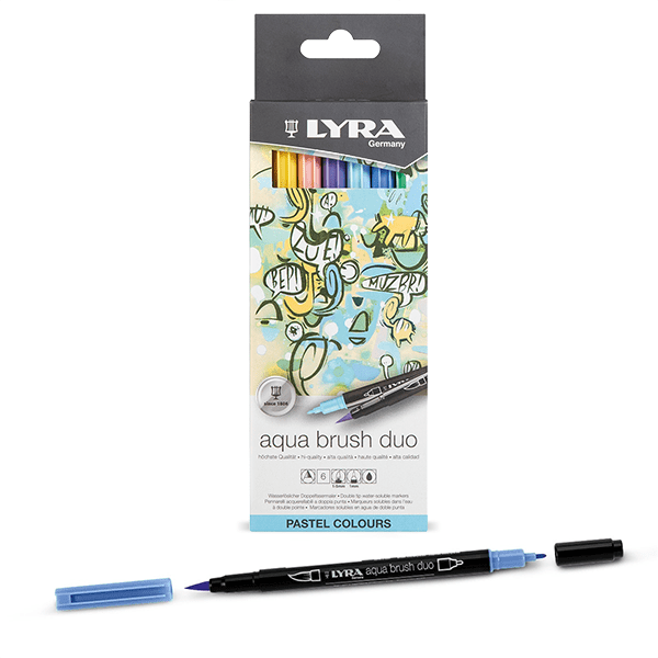 Per gli artisti che per i loro disegni cercano la precisione del tratto e i colori più accesi, c’è la linea di pennarelli per artisti LYRA. Una linea studiata per designers, artisti e appassionati di tutte le età. Lyra Aqua Brush Duo è il pennarello con doppia punta a pennello dai colori brillanti. È pensata per artisti che cercano la versatilità di un pennello e l’estrema precisione del pennarello, in un’unica soluzione. È realizzato con solo inchiostro a base d’acqua che permette di mescolare le tinte dei pennarelli tra loro, per sfumature mozzafiato. Entrambe le punte sono super resistenti e tutti i colori sono acquerellabili e miscelabili con acqua e pennello. LYRA Aqua Brush Duo è disponibile in 80 colori brillanti ed è l’ideale per sperimentare la tecnica del lettering. Tra i pennarelli professionali non poteva mancare Lyra Hi-Quality Art Pen, il pennarello di alta qualità, super professionale, ideale per tutte le tecniche di coloritura, schizzi, disegno artistico e bozzetti. L’inchiostro è luminoso, brillante e resistente alla luce, oltre che a base d’acqua. La punta, invece, in fibra extra resistente, garantisce tratti sempre uniformi e precisi, senza macchiare. È disponibile in 50 varianti colore, tra cui i fluorescenti e metallizzati, oro e argento che scrivono anche su superfici precolorate o materiali scuri.