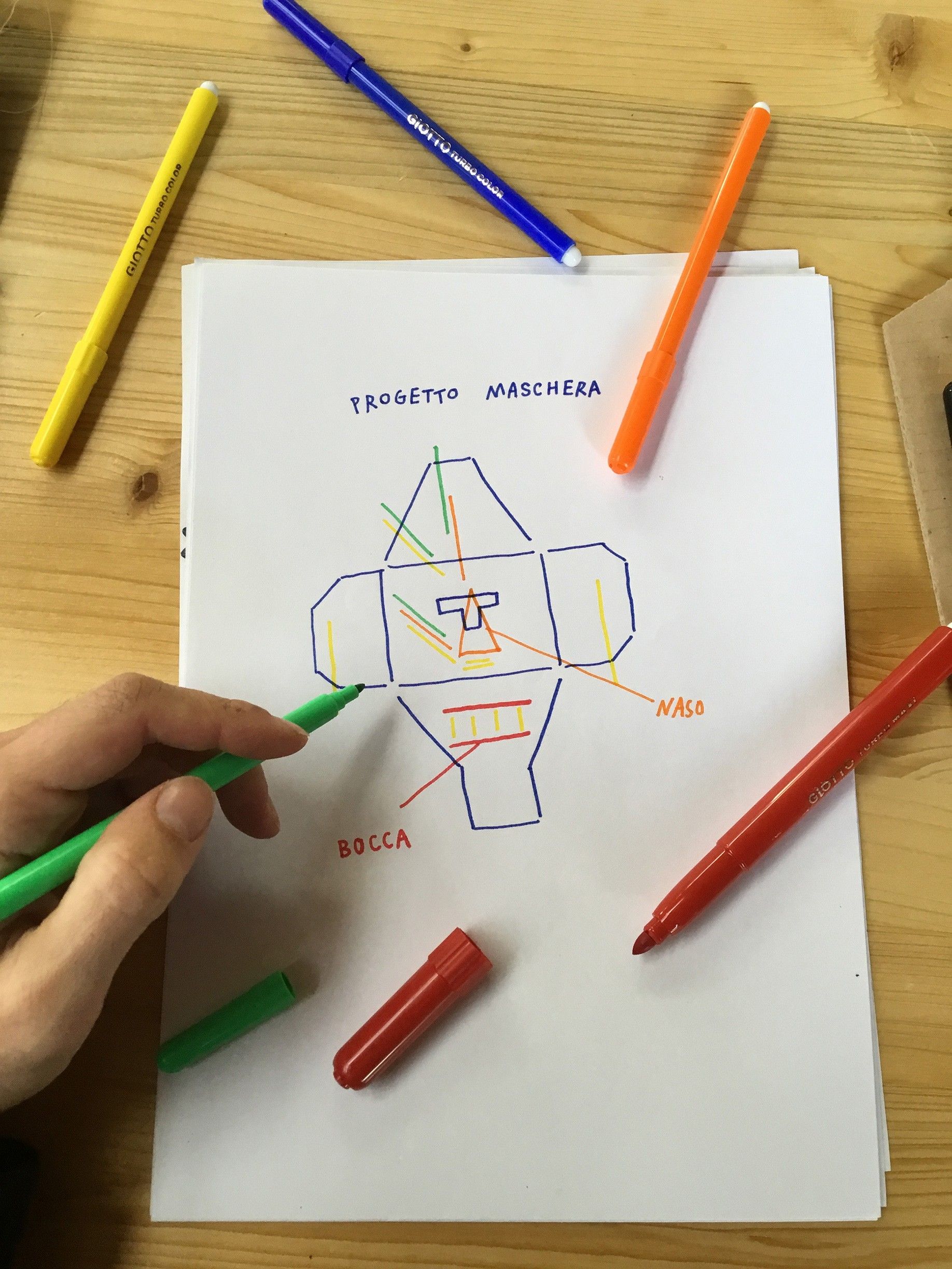 E chi meglio di lui poteva aiutarci e realizzare una maschera carnevalesca con i pennarelli esausti, fatta all’insegna del riuso e del riciclo?
